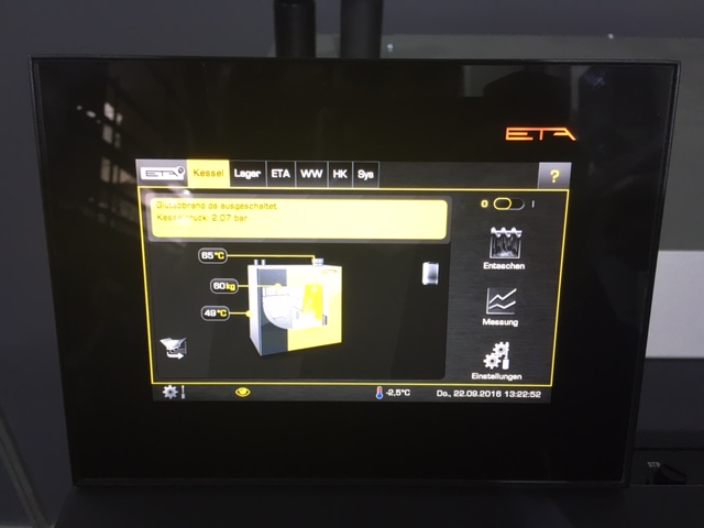 Toujours une avance technologique sur les concurrent. ETA est à la troisième génération d’écran tactile. ETA a été le premier fabricant a produire des chaudières à bois avec écrans tactiles. Ce nouvel écran intègre le nouveau software encore plus ergonomique à l’utilisation, et plus complet. Surface en verre du même type que sur les smartphones. L’écran est aussi un peu plus large que la version actuelle.