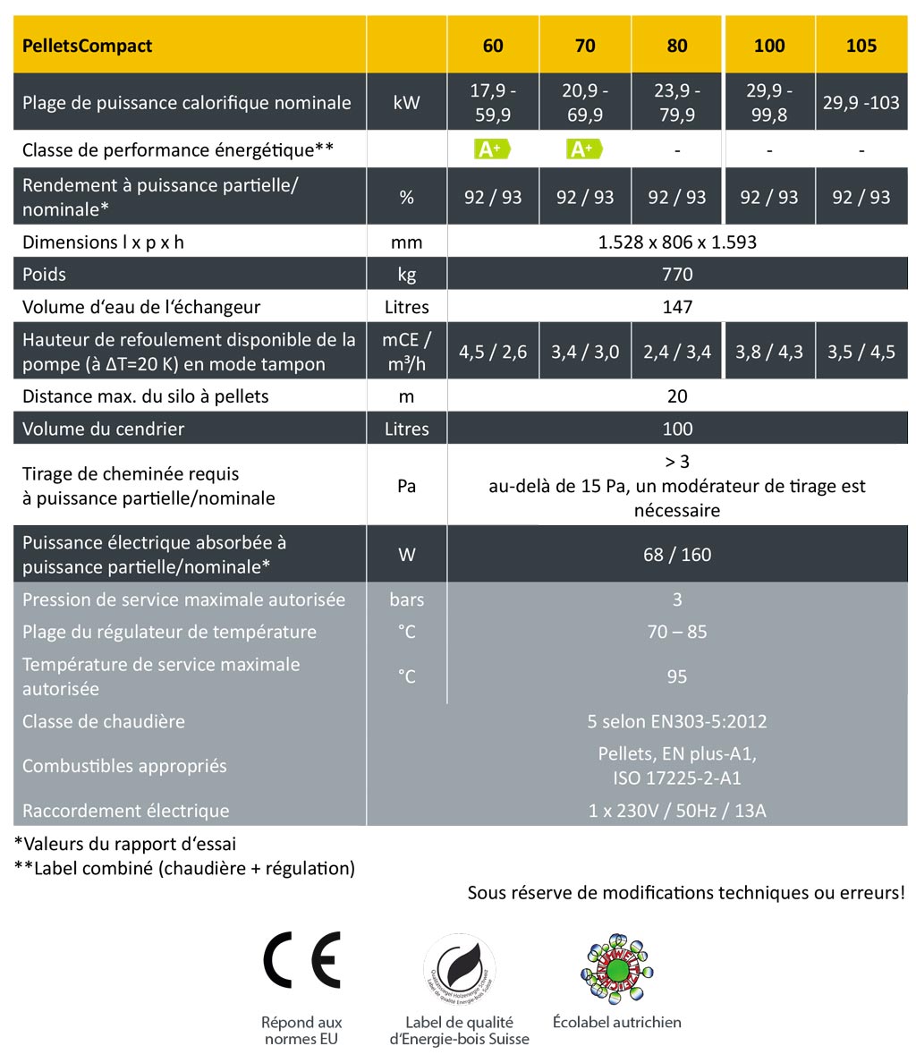 La consommation totale de pellets par an en tonnes se calcule en divisant par 3 la charge calorifique en kilowatt. Pour l’encombrement des pellets en mètres cubes, on divise la charge calorifique par 2. Par exemple, pour une charge thermique de 90 kW, il faut 45 m3 ou environ 30 tonnes de pellets par an. En passant au chauffage avec des pellets, on peut aussi utiliser comme base de calcul la consommation de l’autre combustible.