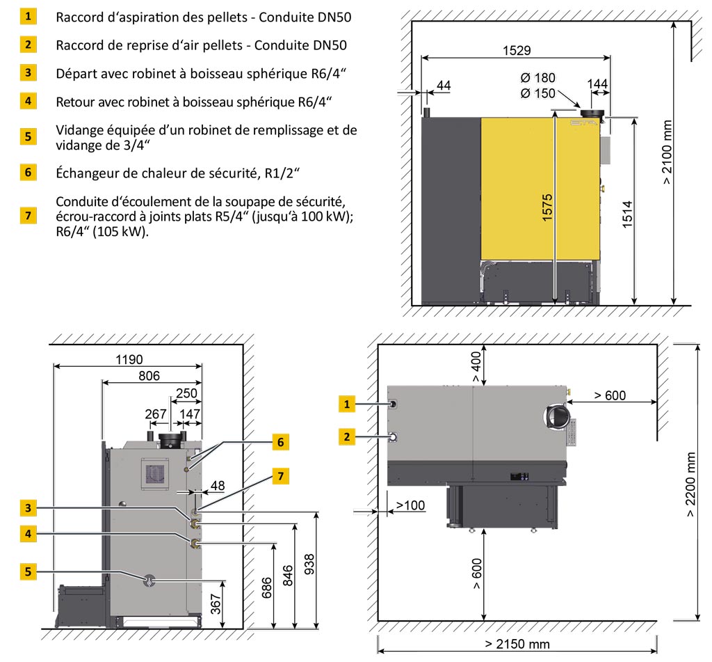 1 Raccord d‘aspiration des pellets – Conduite DN50