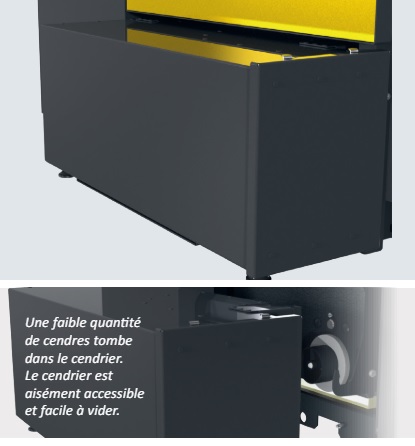 Une faible quantité de cendres tombe dans le cendrier. Le cendrier est aisément accessible et facile à vider.