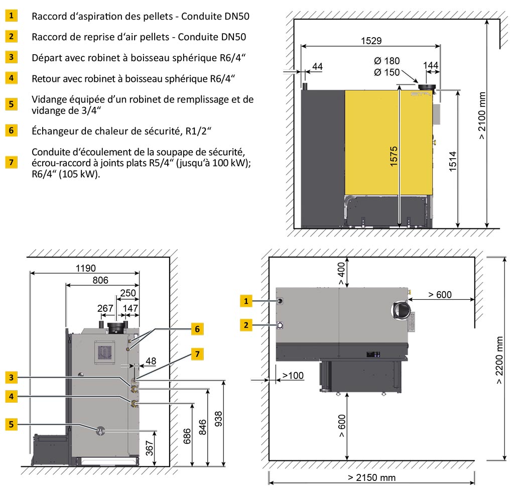 1 Turbine d’aspiration: Elle transporte les pellets du silo au réservoir intermédiaire de la chaudière.