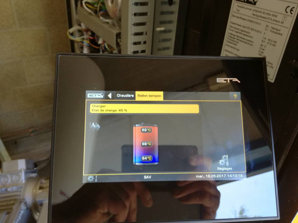 Le client avait déjà un ballon de 5000 litres installé pour ses cogénérations au colza. Que demander de mieux pour une chaudière à bois ! Un client passionné d’énergie.