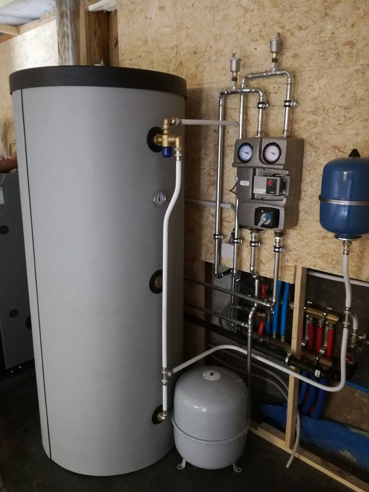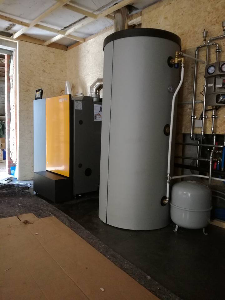 Chaudière à pellets ETA Pellets Compact 20 kW, ballon tampon combiné 500 litres avec production d’eau chaude sanitaire. Nouvelle cheminée inox double paroies isolées. Encore une belle rénovation et des clients heureux. Région Péruwelz.