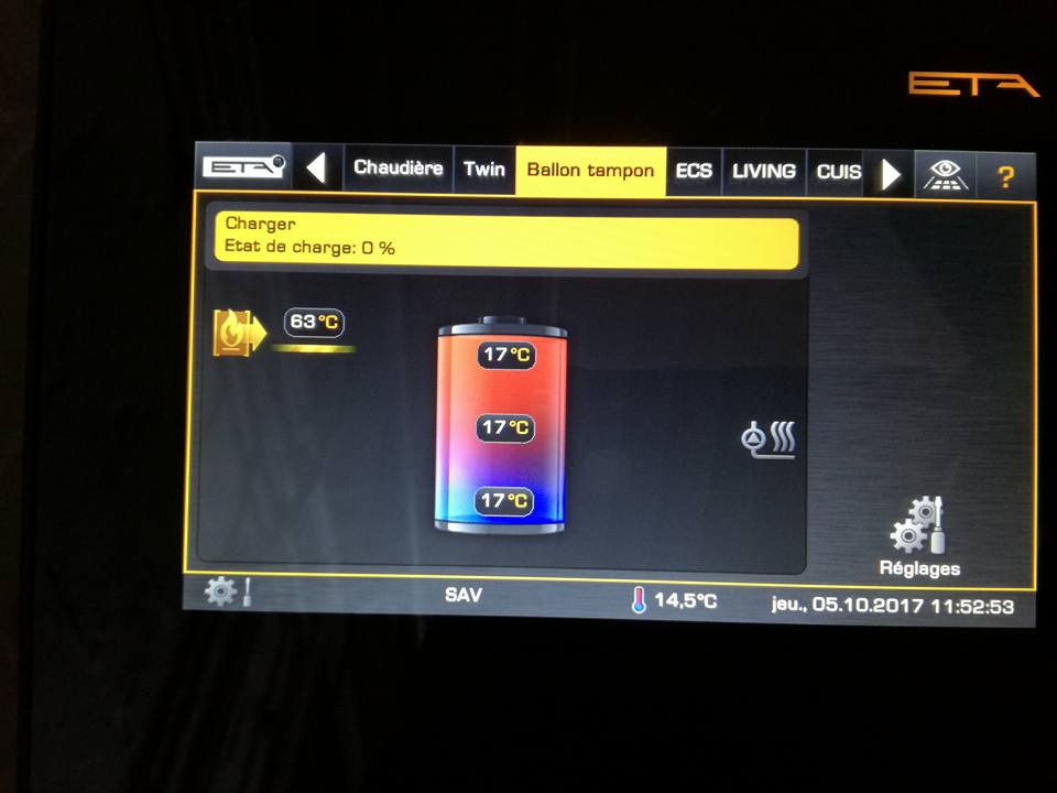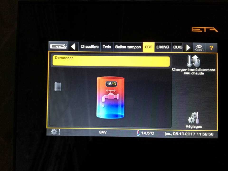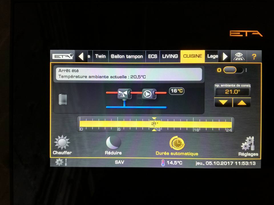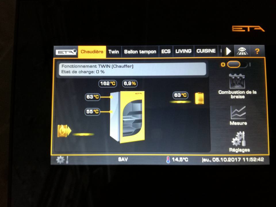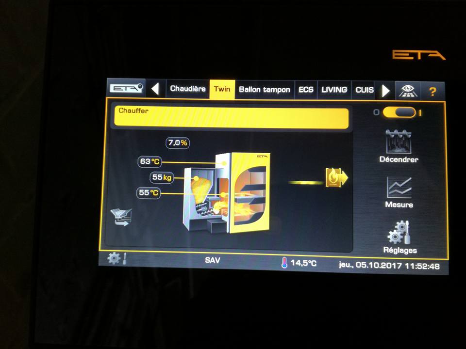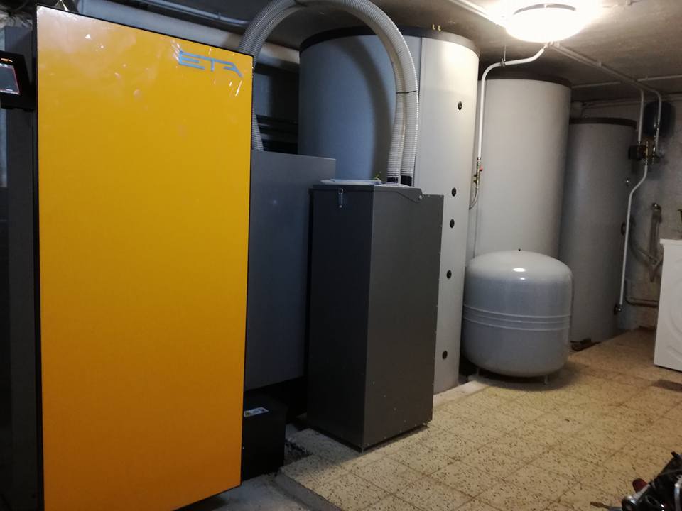 Très belle installation d’une chaudière ETA TWIN, combinée bûches et pellets. La partie bûches est la plus économique en prix de combustible. Il est même possible de brûler du sapin sans encrassement grâce à la combustion par gazéification, gérée électroniquement. Le brûleur pellets assure le confort du 100% automatique avec alimentation et décendrage totalement automatisés.